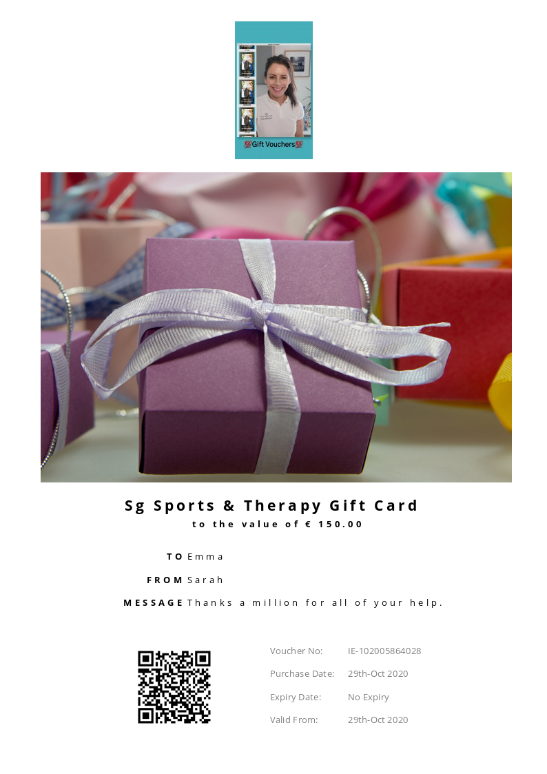Sg Sports & Therapy allows you to purchase instantly printable gift vouchers, special offers and tickets using the Voucher Connect platform.